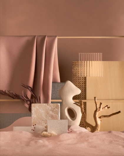 The palette features Peachy Pink, a soft and bright color that evokes happiness with a touch of boldness beyond typical pastel hues. Electric blue infuses interiors with vibrant appeal. Sunset Coral, one of Coloro’s key colors for spring and summer 2025, serves as an “antidote to the current obsession with productivity and, despite its energetic appearance, encourages you to relish moments of leisure.”