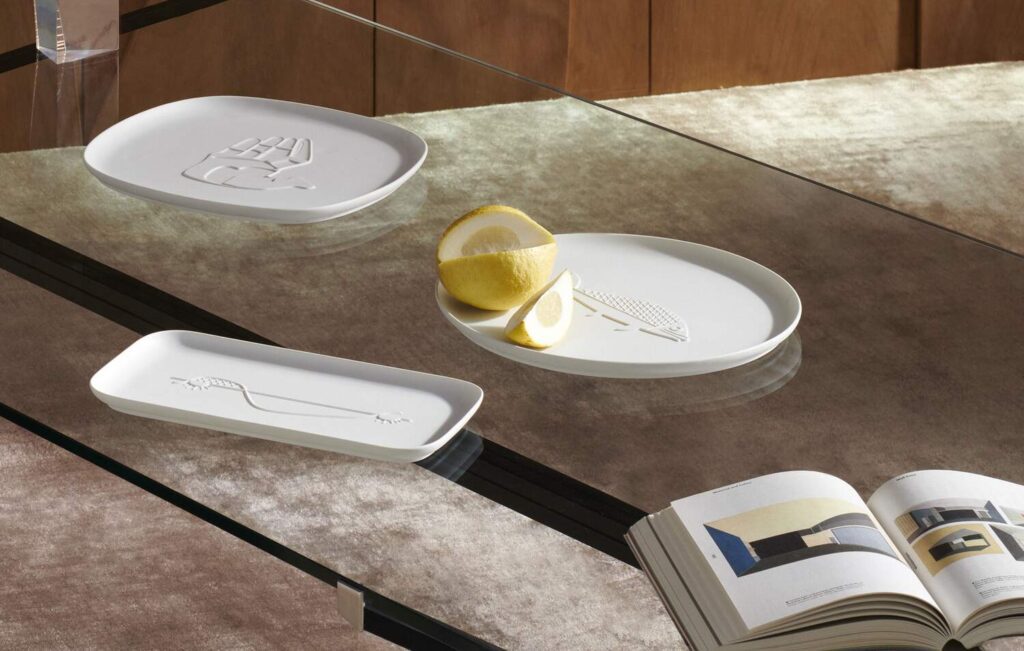 Cassina looks to the genius of Le Corbusier as inspiration for a collection of three modern trays in pure, unglazed porcelain.