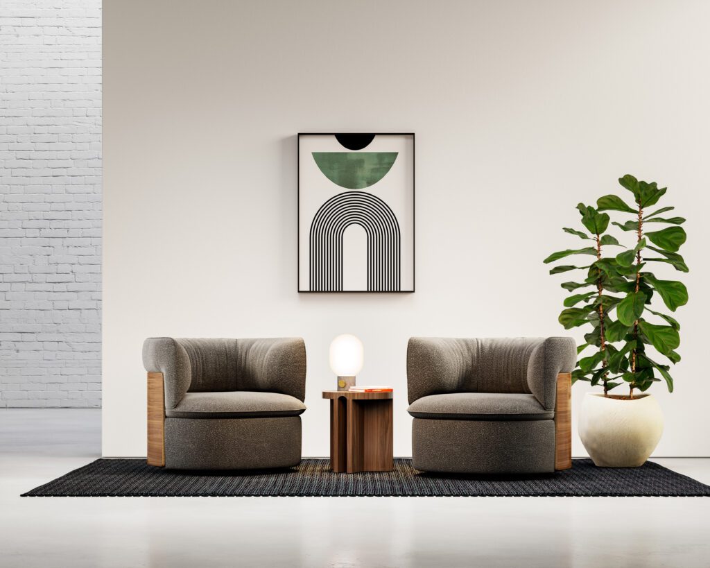 Oko is an elegant lounge chair inspired by the curves of a cocoon. The pillowy seat and backrest invite you to sink in, while a rigid back panel supports the shape and doubles as a decorative element. Click here to learn more.