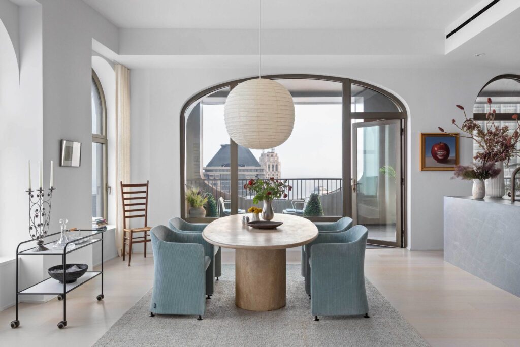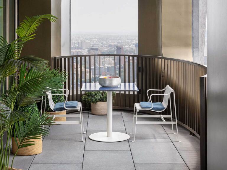 With a sophisticated subtlety, iconic pieces such as Giulio’s Cappellini’s Dolmen, and Marc Newson’s Embryo Chair, pair harmoniously with rugs from Kasthal, lamps by Foscarini, and fine art provided by Salomon Art Gallery located in Tribeca. In addition, the study featuring the Aliante bookshelf by Rodolfo Dordoni and Mr. Cappellini, is encased with a bespoke wall covering by Brooklyn based Calico Wallpaper. Although thematically vintage, the penthouse apartment extends to an outstanding terrace featuring Cappellini’s new Lido Collection, a new outdoor line headlined by the Litos sofa, designed by Sebastian Herkner, and Jasper Morrison’s classic Thinking Man’s Chair. With a backdrop of Manhattan’s skyline framed by uniquely arched windows, Residenza Cappellini again brings Cappellini to the forefront of what it means to live beautifully, dream, and smile.